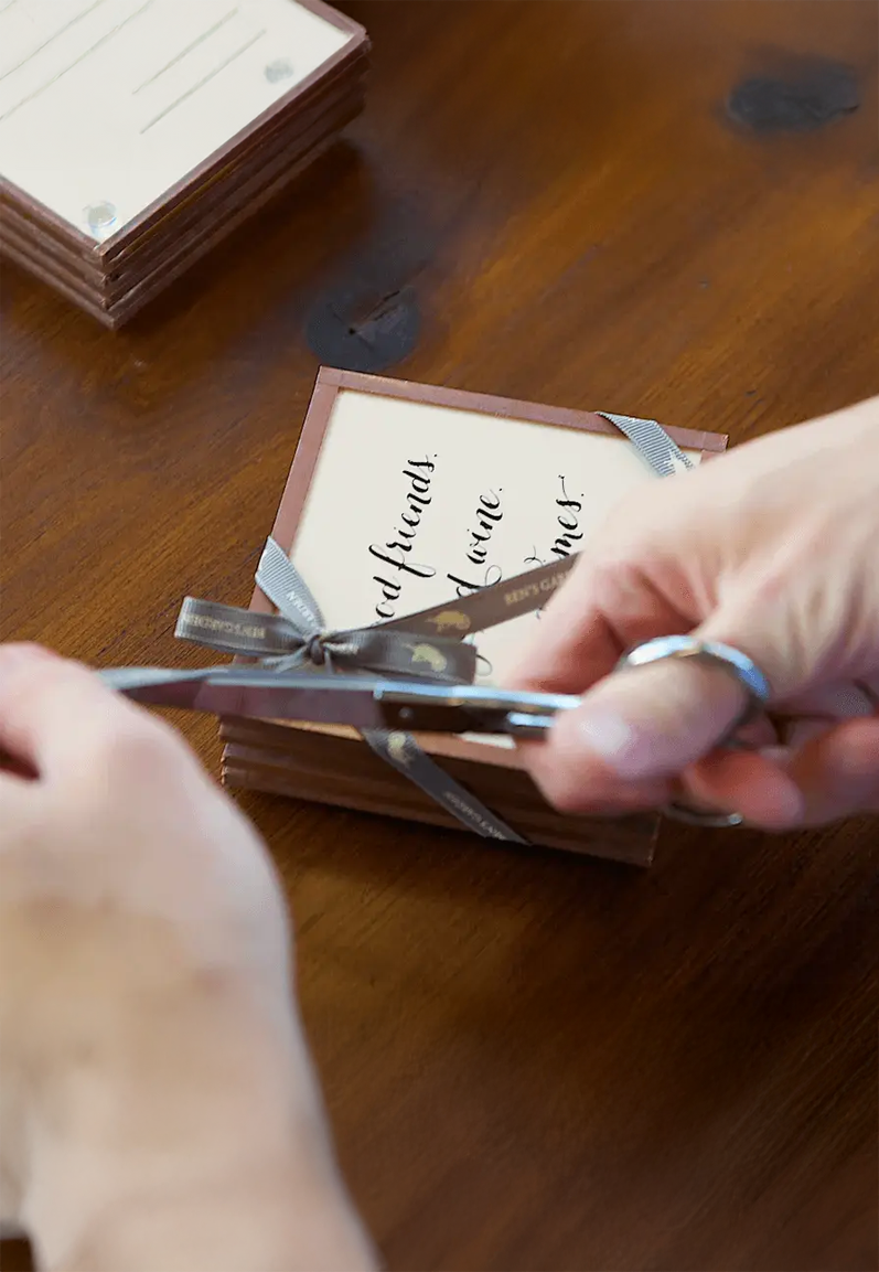 Each set of 4 coasters is wrapped with pewter grosgrain ribbon. Packaged in a fantastic signature Ben's Garden gift box, ready for gift giving. The back of each coaster reads "Handcrafted with antiqued copper and glass in New York by Ben's Garden."