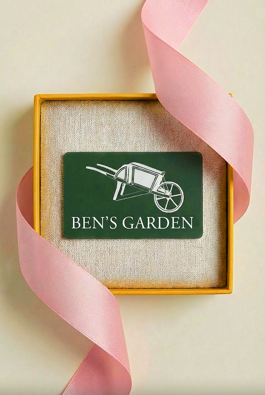 By purchasing, using, or accepting this card, you agree to the Ben’s Garden Gift Card Terms of Service.